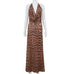 Women's Clothing V-neck Halter Bare Back Sexy Leopard Print Dress Slim Temperament