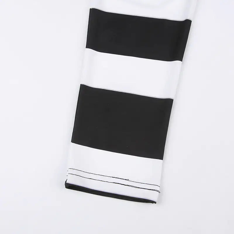 Elevate your ensemble with the eye-catching cutout front and zipper back closure, perfectly accentuating your figure for a look that commands attention. Meanwhile, the playful striped pattern injects a dash of personality into your attire.