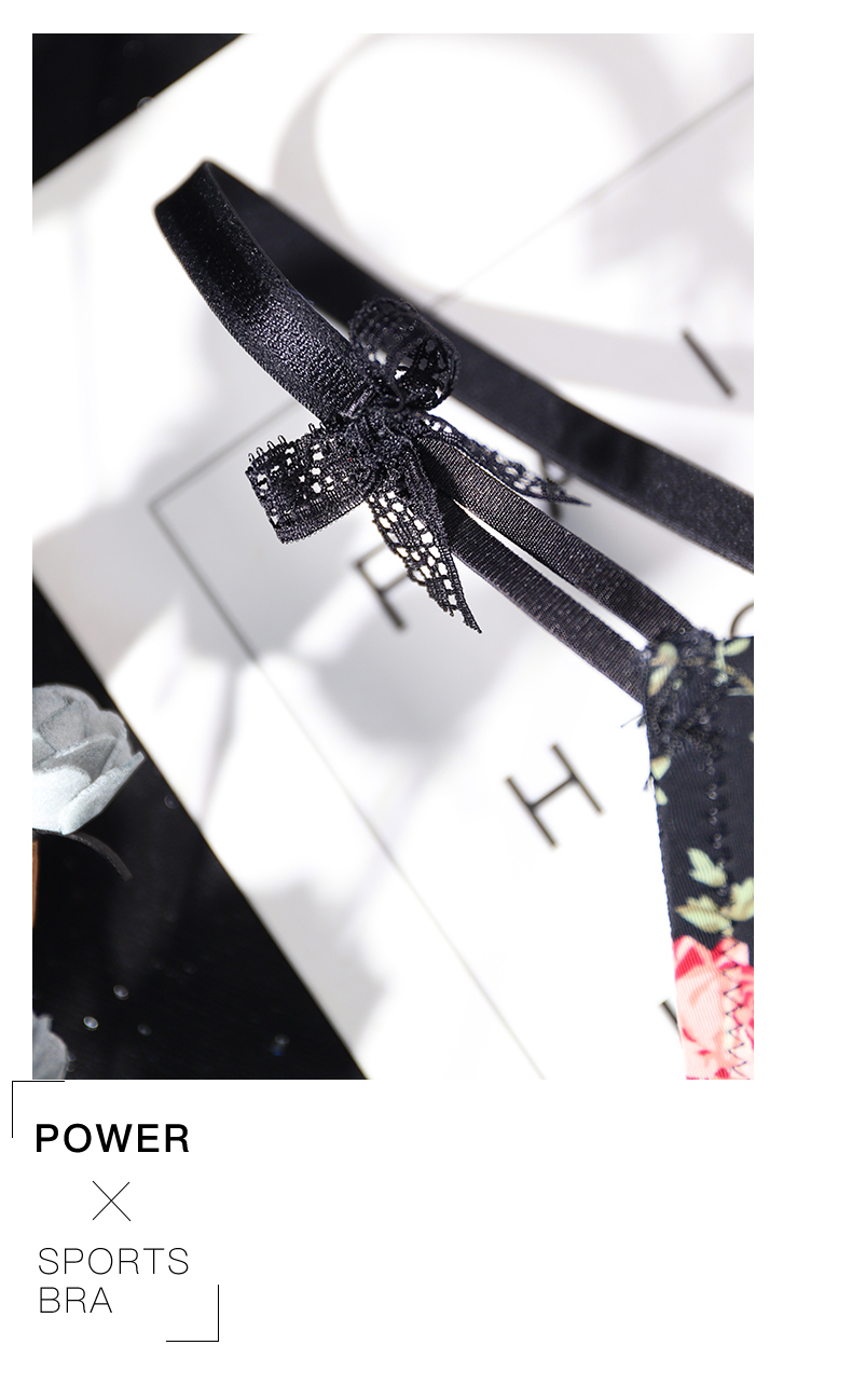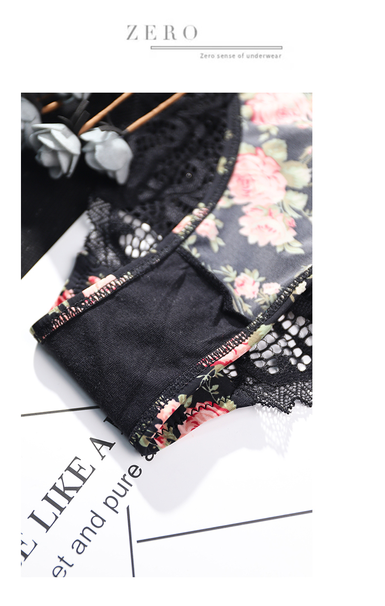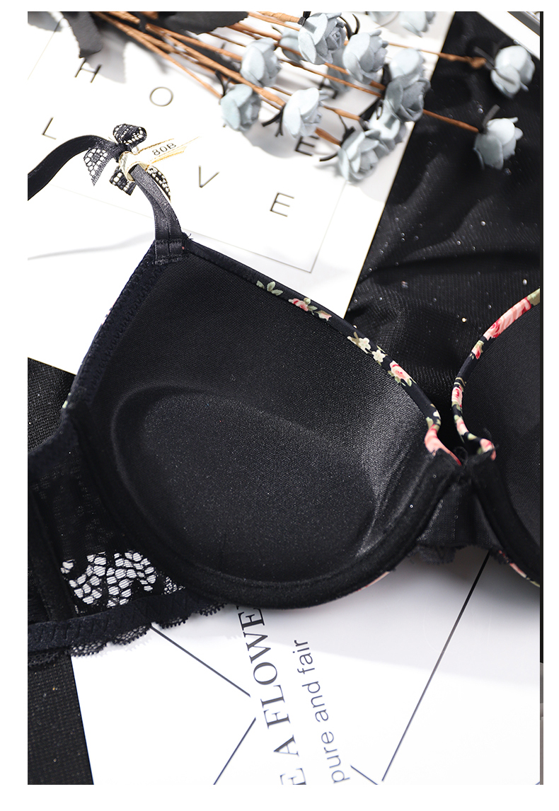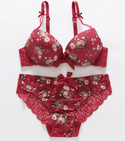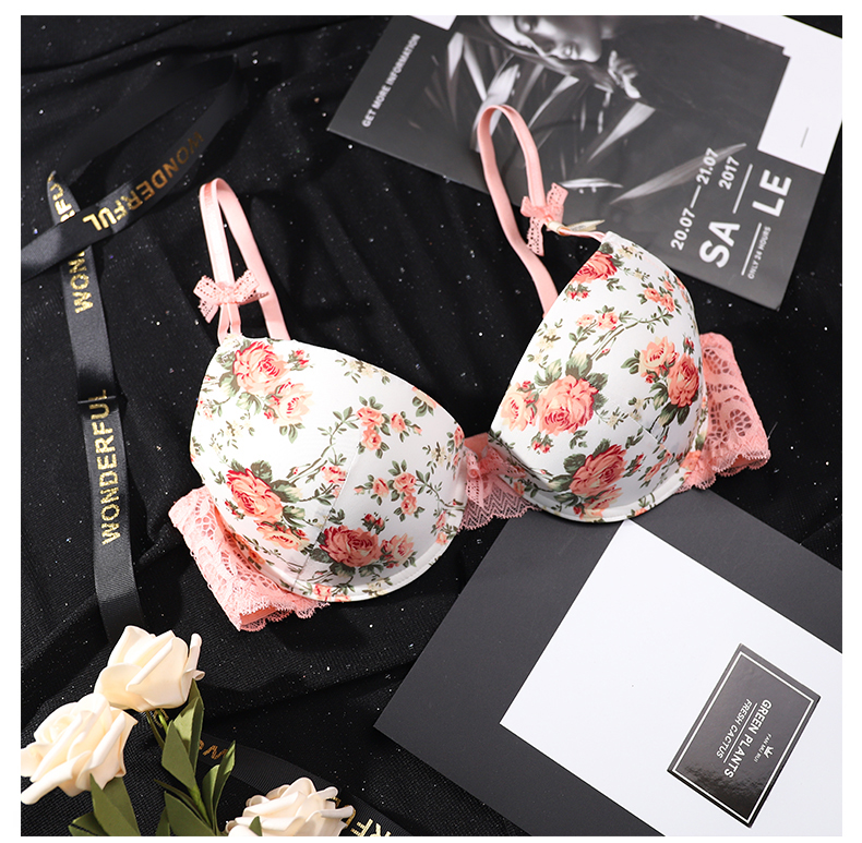 French Lace Edge Floral Print Bra Set for Women