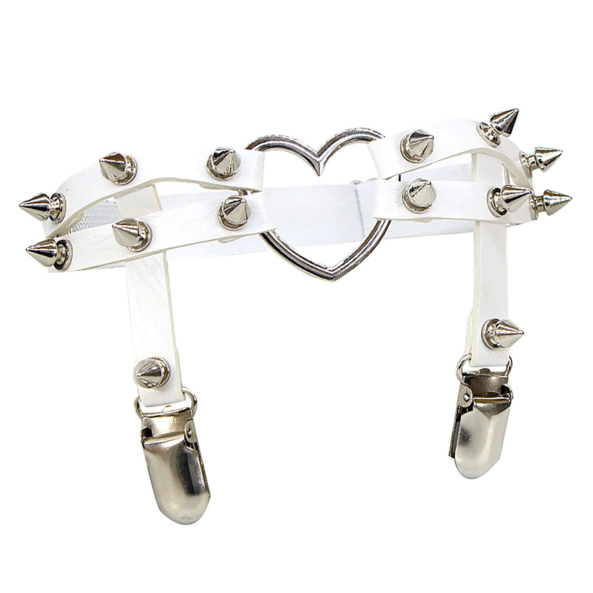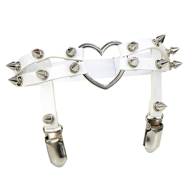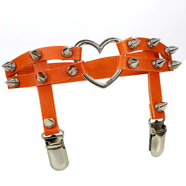 Looking to add a touch of allure and boldness to your ensemble? Our sexy garter belt is just what you need! Crafted from sleek PU leather, this daring accessory boasts rivet accents and a heart-shaped charm for an edgy yet playful vibe. Whether you're aiming for a punk-inspired look or embracing your inner goth, this garter belt promises to make a statement wherever you go.