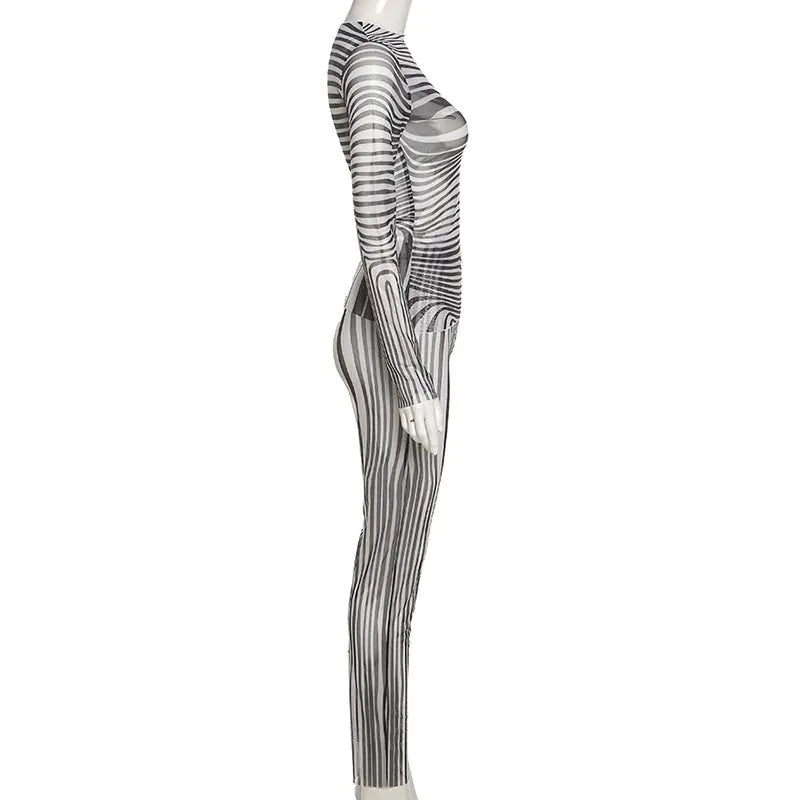 The mesmerizing striped pattern adds a playful touch to your silhouette. It's not just a pattern; it's a visual delight that creates a sense of movement and energy. Get ready to flaunt your stripes with confidence!