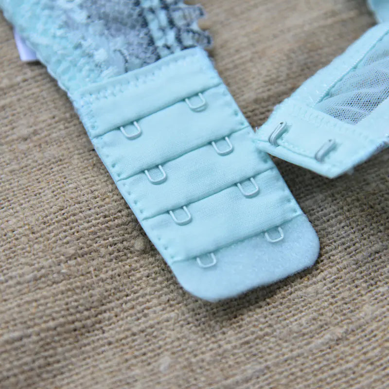 Crafted from premium nylon lace, this bra set combines elegance with durability. The delicate lace detailing not only adds a touch of sophistication but also ensures breathability for all-day wear. Available in a range of sizes and colors, including classic black, soft mint blue, and timeless white, there's a perfect match for every outfit and mood.