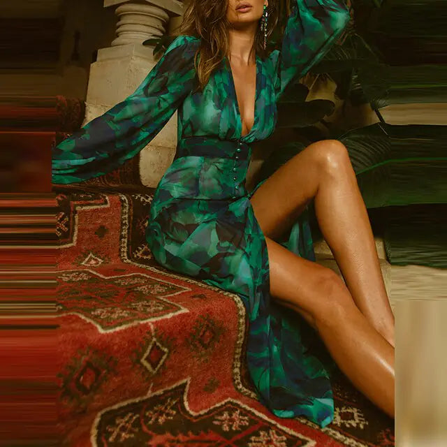 Step into sophistication with our latest creation: the Women Sexy Button V-Neck Slit Party Dress. Perfectly blending high street fashion with timeless elegance, this dress is a must-have addition to your wardrobe.