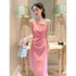 Women's Slim Pearl Strap Midi Dress for Summer 2024